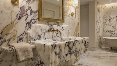 Meuble-lavabo de salle de bains en marbre Calacatta Viola, à fixation murale, façade cannelée (L) 54 cm (l) 94 cm (H) 31 cm