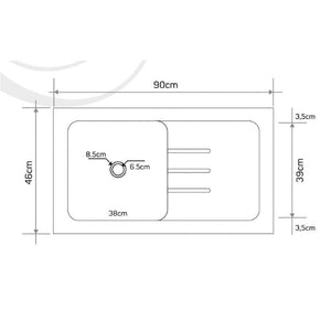 - Sink size is (W)18" (L)36" (H)7" (Metric size is width is 46cm, length is 90cm, height is 18cm)