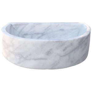 The smooth polished interior and exterior ensure this vessel sink will be the focal point of your bathroom decor. The breathtaking marble from Turkey will blend into any setting. These half-round, wall-mount vessel sinks for bathrooms are not only convenient for everyday use but also an ornament for your living space. The artisanal construction ensures that no two sinks will be exactly identical.
