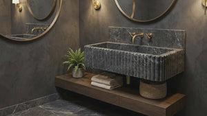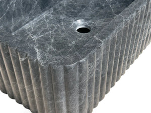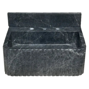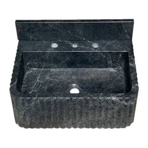 Lavabo de salle de bains Sirius Black en marbre, à fixation murale, à surface nervurée, avec dosseret de 11 cm