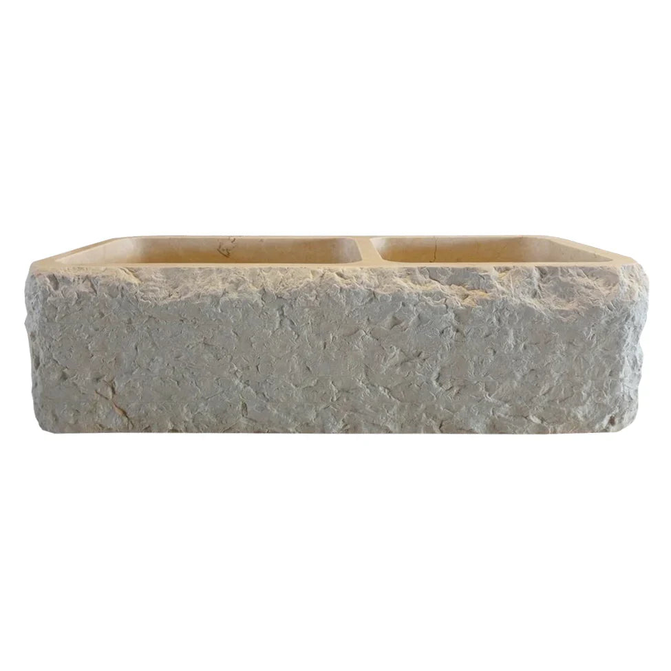 Botticino Beige Marble Farmhouse Apron Kitchen Double Sink (W)16" (L)32" (H)10"offers;